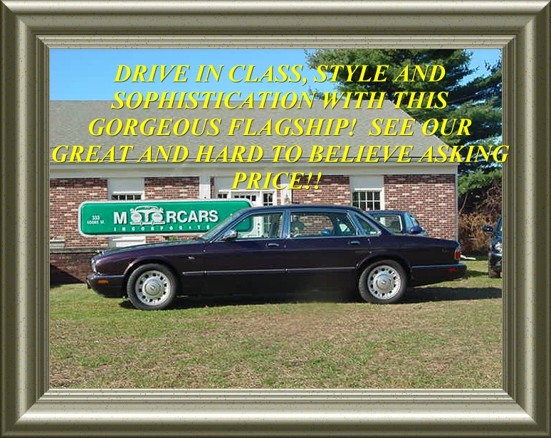 Vehicle Description: *WOW!! ANOTHER GREAT FIND. BEAUTIFUL DARK METALLIC PLUMB WITH A COMPLIMENTORY LIGHT CREAM CONNOLLY LEATHER INTERIOR WITH A DARK PIPING ACCENTS. THIS IS JAGUAR'S FLAGSHIP MODEL WITH A LONGER WHEEL BASE MAKING FOR ONE OF THE SMOOTHEST RIDES THERE IS. THE VDP STANDS OUT FROM THE REST WITH FRONT AND REAR FLUTED GRILLS, CHROME COVERED REAR VIEW MIRRORS SPECIAL 16 INCH CROWN ALLOY RIMS AND THE LONG WHEEL BASE. THE VDP IS ALSO EQUIPPED REAR PASSENGER WOOD PICNIC TRAYS AND A MORE "PLUSH" VERY RICHLY APPOINTED CABIN SPACE. WITH ITS SHEER LUXURY AND GREAT LOOKS ALONG WITH PROVEN RELIABILITY AND CLASS YOU SIMPLY CAN NOT GO WRONG. LOADED WITH FRONT AND REAR HEATED SEATS, A MULTI-FUCTION WOOD AND LEATHER WRAPPED POWER ADJUSTING STEERING WHEEL, A PREMIUM SOUND SYSTEM WITH CASSETTE AND A CD CHANGER, TRACTION CONTROL, DUAL FRONT AND SIDE AIRBAGS, ABS BRAKES, POWER EVERYTHING, A POWERFUL 290H.P. 4.0L V8 AND MORE. IT IS HARD TO BELIEVE A CAR OF THIS CALIPER IS AVAILABLE FOR OUR GREAT PRICE!! THAT IS SUCH UNBELIEVABLE VALUE FOR SUCH A BEAUTIFUL, CLASSY AND TIMELESS AUTOMOBILE. CALL TOLL FREE 1-800-899-1055 OR