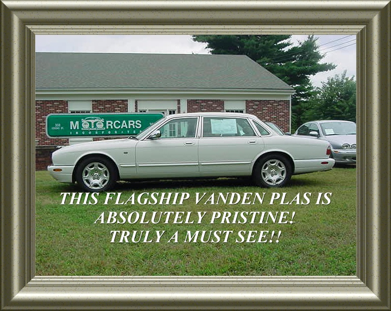 Vehicle Description: ANOTHER GORGEOUS LOW MILEAGE VANDEN PLAS LONG WHEEL BASE SEDAN TO ADD TO OUR FLEET OF PRISTINE JAGUARS. BEAUTIFUL WHITE WITH TAN CONN0LLY LEATHER AND DARKER TAN PIPING ACCENTS AROUND THE BUCKET STYLE SEATS. THE VAMNDEN PLAS IS JAGUAR'S FLAGSHIP MODEL AND LISTED NEW FOR OVER 68K!! LOADED WITH EVERY CONCEIVABLE OPTION, LIKE REAR PASSENGER MAPLE WOOD PICNIC TABLES AND PLENTY OF LEG ROOM. THIS CAR HAS TRACTION CONTROL,ALPINE STEREO W/ CASSETTE AND A 6 DISC CD CHANGER, MEMORY SEATING, DIGITAL AUTOMATIC CLIMATE CONTROL, ELECTRONIC ADJUSTABLE WOOD AND LEATHER WRAPPED MULTI-FUNCTION STEERING WHEEL, KEYLESS ENTRY WITH ALARM, BEAUTIFULLY APPOINTED BURLED MAPLEWOOD DASHBOARD AND TRIM, FRONT AND REAR HEATED SEATS AND MUCH MUCH MORE, TOO MUCH TO LIST!! THE VANDEN PLAS ALSO KNOW AS THE VDP STANDS IN A CLASS OF IT'S OWN WITH CHROME COVERED MIRRORS, A FLUTED FRONT AND REAR GRILL AND SPECIAL ALLOY RIMS. THERE IS NO MISTAKING A VDP. TRULY LUXURY AT IT'S FINEST!! ***COMPETITIVE FINANCING AVAILABLE!!*** SEE PAYMENT EXAMPLE AND DISCLAIMER*** CALL TOLL FREE 800-899-1055 OR e-mail sales@motorcarsinc.com for more info.**** COMPETITIVE FINANCING AVAILABLE ****