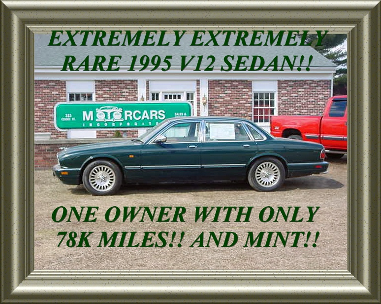 Vehicle Description: WHAT A GREAT FIND!!.... A VERY VERY LIMITED PRODUCTION 1995 V12 ONE OWNER SHORT WHEEL BASE! SEDAN!! YES ONE OWNER AND A V12!! THIS CAR IS IMPECABLY CLEAN WITH A VERY LOW 78K MILES. THE V12 SEDANS HAD A VERY LIMITED PRODUCTION NUMBER WITH AN EVEN LOWER IMPORT NUMBER TO THE US. THE ARE VERY VERY DIFFICULT TO COME BY!! ESPECIALLY AS CLEAN AS THIS ONE AND THE RIGHT COLOR COMBO OF BRITISH RACING GREEN AND A TWO-TONE CREAM AND TAN RICHLY APPOINTED CONNOLLY LEATHER INTERIOR. THIS CAR HAS THE BEST OF EVERYTHING AND IS LOADED WITH EVERY CONCEIVABLE OPTION FOR THE YEAR!! THE ULTIMATE ULTIMATE IN SHEER LUXURY AND PERFORMANCE. THERE IS ABSOLUTELY NOTHING LIKE HAVING A V12 UNDER THE HOOD WITH THE SMOOOOOOOOTHEST ACCELERATION AND POWER!! EQUIPPED WITH POWER EVERYTHING,A PREMIUM HARMON KARDON STEREO W/CASSETTE AND CD CHANGER,KEYLESS ENTRY W/FACTORY ALARM, FRONT AND REAR FOGLIGHTS,DUAL AIRBAGS,ABS DISC BRAKES,FULL SIZE MATCHING SPARE,HEATED SEATS, TRACTION CONTROL AND SO MUCH MORE. YOU JUST HAVE TO SEE AND DRIVE THIS CAR......AND ONCE YOU DO, THERE WILL BE NO QUESTION IN YOUR MIND THAT YOU WILL JUST HAVE TO HAVE IT!! THERE REALLY IS NOTHING LIKE A V12 JAG SEDAN!! THIS IS ONE BEAUTIFUL AND EXTREMELY RARE V12!! Thank you for your Automotive Internet Inquiry.