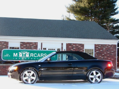 Vehicle Description: IT JUST DOES NOT GET ANY BETTER THEN THIS!! THIS IS ONE SURE HEAD TURNER!! IT JUST MAKES SO MUCH SENSE TO BUY THIS CAR BECAUSE BEING AN ALL WHEEL DRIVE CONVERTIBLE THAT SEATS FOUR, IT IS PERFECT FOR OUR NEW ENGLAND SEASON CHANGES!! ESPECIALLY WITH AUDI'S PROVEN REPUTATION,PROVEN ALL WHEEL DRIVE SYSTEM, GREAT LOOKS AND GREAT VALUE!! THIS IS THE TOP OF THE LINE 3.0 LITER V6 QUATTRO WITH A GORGEOUS SUPER HARD TO FIND COLOR COMBO OF TRIPLE BLACK! NOW THIS CAR HAS GOT "EYE APPEAL"!!! AND IS LOADED WITH ALL THE OPTIONS LIKE A PREMIUM BOSE SOUND SYSTEM WITH AN IN DASH 6 DISC CD CHANGER AND CASSETTE, FULL DUAL POWER HEATED SEATS WITH POWER ADJUSTING MULTI-POSITION LUMBAR SUPPORT, A LEATHER WRAPPED MULTI-FUNCTION TILT STEERING WHEEL, DUAL ZONE DIGITAL CLIMATE CONTROL, MULTIPLE CUP HOLDERS, DUAL FRONT AND SIDE AIRBAGS, ELECTRONIC STABILIZATION PROGRAM, KEY-LESS ENTRY WITH REMOTE TRUNK RELEASE AND FACTORY ALARM AND THIS ALL WHEEL DRIVE HAS THE S-LINE PACKAGE WITH THE SUPER SPORTY UPGRADED FIVE STAR 18 INCH ALLOY RIMS WITH A FULL SIZE MATCHING SPARE,(WE EVEN JUST PUT FOUR BRAND NEW PIRELLI ALL SEASON TIRES ON IT), REAR LIP SPOILER AND SPECIAL S-LINE BADGING THAT REALLY MAKE IT STAND OUT ABOVE THE REST!! IT ALSO HAS POWER ONE TOUCH UP AND DOWN WINDOWS, POWER MIRRORS THAT EVEN FOLD IN WITH THE FLIP OF A SWITCH! AND MOST IMPORTANTLY THIS HOT LOOKING DROP TOP HAS A ONE TOUCH POWER CONVERTIBLE TOP!! AND STILL JUST SO MUCH MORE!! AUDI EVEN THOUGHT OF THE IDEA TO HAVE ONE MASTER CONTROL SWITCH FOR ALL THE WINDOWS TO GO UP OR DOWN SIMULTANEOUSLY FOR THE SHEER CONVENIENCE ALONE!! THIS CAR IS "STATE OF THE ART" AS WELL AS NICE TO LOOK AT! AND THE SUNNY DAYS WILL SOON BE HERE AGAIN SOON! SO TREAT YOURSELF YO THIS AWESOME GERMAN ENGINEERED ROADSTER!! ASKING $27,500.===== **** WE HAVE VERY COMPETITIVE FINANCING AVAILABLE ON SITE **** AND WE PRIDE OURSELVES ON MAKING YOUR AUTOMOBILE PURCHASE AN ENJOYABLE ONE!! NO MATTER WHAT KIND OF CAR YOU ARE PURCHASING FROM US!! CALL TOLL FREE 1-800-899-1055 OR e-mail; sales@motorcarsinc.com MOTORCARS INCORPORATED has been a family owned business for Over 55 years. Our experienced owners and technicians strive to insure that you are satisfied with your purchase. All our vehicles go through a stringent and extensive inspection in our service department. All vehicles are road ready for you and your family to experience and enjoy a mechanically SAFE and very detailed Luxury motorcar. CALL TOLL FREE 1-800-899-1055 Or e-mail sales@motorcarsinc.com WE ARE A CERTIFIED CARFAX DEALER.