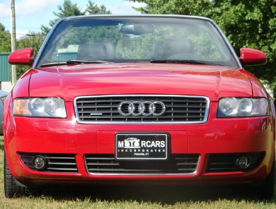 THIS IS ONE OF THE BEST LOOKING CONVERTIBLES ON THE ROAD TODAY!! THIS ONE IS ABSOLUTELY GORGEOUS WITH A GREAT COLOR COMBO OF VERY DEEP RED, A BLACK CANVAS ROOF AND THE MOST RICHLY APPOINTED MATCHING BLACK LEATHER INTERIOR. EQUIPPED WITH A ONE TOUCH POWER CONVERTIBLE TOP, BEAUTIFUL 17 INCH SPORT ALLOY RIMS WITH A FULL SIZE MATCHING SPARE, XENON HEADLAMPS,FRONT AND REAR FOG LIGHTS,KEYLESS ENTRY WITH FACTORY ALARM AND REMOTE TRUNK RELEASE,PREMIUM BOSE SOUND SYSTEM WITH A 6 DISC IN-DASH CD CHANGER AND CASSETTE, HEATED POWER SEATS WITH MEMORY, POWER MIRRORS, DUAL FRONT AND SIDE AIRBAGS, ALL WHEEL DRIVE WITH ELECTRONIC STABILIZATION TRACTION CONTROL, ABS BRAKES, EVEN HIGH PRESSURE HEADLAMP WASHERS, THE SMOOTHEST BELT DRIVE AUDI "CVT" 6 SPEED AUTOMATIC TRANSMISSION WITH A SPORT SHIFTING MODE AND STILL SO MANY MORE FEATURES AND COMFORTS!! AUDI THOUGHT OF EVERYTHING ON THIS BEAUTIFUL DROP-TOP!! MAKING THE PERFECT CAR FOR ALL SEASONS BEING ALL WHEEL DRIVE WITH ELECTRONIC STABILIZATION TRACTION CONTROL, SEATING FOR FOUR, SUPER SOLID,SUPER RELIABLE 3.0L V6 & SAFE, AND IT'S A CONVERTIBLE!! NOW THAT JUST REALLY MAKES A LOT OF SENSE! ========= **WE HAVE VERY COMPETITIVE FINANCING AVAILABLE ON SITE **** AND WE PRIDE OURSELVES ON MAKING YOUR AUTOMOBILE PURCHASE AN ENJOYABLE ONE!! NO MATTER WHAT KIND OF CAR YOU ARE PURCHASING FROM US!! CALL TOLL FREE 1-800-899-1055 OR e-mail; sales@motorcarsinc.com MOTORCARS INCORPORATED has been a family owned business for Over 55 years. Our experienced owners and technicians strive to insure that you are satisfied with your purchase. All our vehicles go through a stringent and extensive inspection in our service department. All vehicles are road ready for you and your family to experience and enjoy a mechanically SAFE and very detailed Luxury motorcar. CALL TOLL FREE 1-800-899-1055 Or e-mail sales@motorcarsinc.com WE ARE A CERTIFIED CARFAX DEALER.