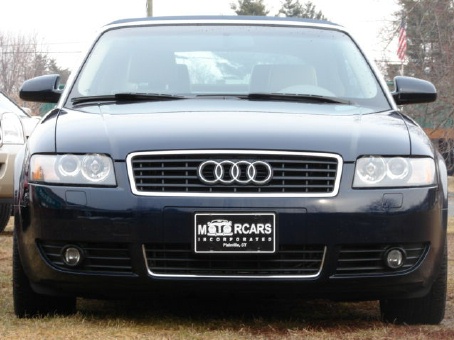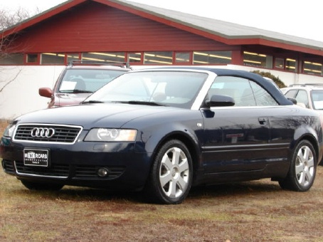 THE AUDI A4 CONVERTIBLE IS ONE OF THE BEST LOOKING CONVERTIBLES ON THE ROAD TODAY!! THIS ONE IS ABSOLUTELY GORGEOUS WITH A GREAT COLOR COMBO OF DARK NAVY BLUE, MATCHING NAVY BLUE CANVAS TOP AND THE MOST RICHLY APPOINTED CREAMISH-TAN LEATHER INTERIOR. EQUIPPED WITH A ONE TOUCH POWER CONVERTIBLE TOP, ONE TOUCH POWER WINDOWS, ALONG WITH BRILLIANT GERMAN ENGINEERING WHERE IT EVEN HAS A "ONE-TOUCH" BUTTON FOR ALL THE WINDOWS WHICH IS A GREAT FEATURE BEING A CONVERTIBLE, THIS ONE HAS THE SPORT PACKAGE WITH THE BEAUTIFUL 17 INCH ALLOY RIMS, XENON HEADLAMPS, FRONT AND REAR FOGLIGHTS, KEYLESS ENTRY WITH FACTORY ALARM AND REMOTE TRUNK RELEASE, PREMIUM BOSE STEREO WITH A 6 DISC IN DASH CD CHANGER AND CASSETTE PLAYER, HEATED POWER SEATS WITH DRIVERS SIDE MEMORY, POWER MIRRORS THAT FOLD IN FOR THOSE TIGHT PARKING SPOTS, DUAL FRONT AND SIDE AIRBAGS, FRONT WHEEL DRIVE WITH AN ELECTRONIC STABILATION TRACTION CONTROL SYSTEM, ABS BRAKES, EVEN HIGH PRESSURE HEADLAMP WASHERS, AUDI'S EVER SO PROVEN SUPER RELIABLE 1.8 TURBO ENGINE MATCHED WITH THE SMOOTHEST BELT DRIVEN AUDI "CVT" 6 SPEED AUTOMATIC TRANSMISSION THAT EVEN HAS A SPORT SHIFTING MODE AND STILL JUST SO MUCH MANY FEATURES AND COMFORTS!!AUDI THOUGHT OF EVERYTHING ON THIS BEAUTIFUL DROP-TOP!! MAKING THE PERFECT CAR FOR ALL SEASONS WITH AUDI'S RELIABILITY AND GREAT LOOKS, IT IS GREAT IN THE WINTER MONTHS BEING FRONT WHEEL DRIVE, IT HAS SEATING FOR FOUR!, IT IS A SUPER RIGID, SUPER SOLID & SUPER SAFE VEHICLE!! AND THE BEST PART ABOUT IT IS ALL THAT AND A CONVERTIBLE TOP TO BOOT!! ===== **** WE HAVE VERY COMPETITIVE FINANCING AVAILABLE ON SITE **** AND WE PRIDE OURSELVES ON MAKING YOUR AUTOMOBILE PURCHASE AN ENJOYABLE ONE!! NO MATTER WHAT KIND OF CAR YOU ARE PURCHASING FROM US!! CALL TOLL FREE 1-800-899-1055 OR e-mail; sales@motorcarsinc.com MOTORCARS INCORPORATED has been a family owned business for Over 55 years. Our experienced owners and technicians strive to insure that you are satisfied with your purchase. All our vehicles go through a stringent and extensive inspection in our service department. All vehicles are road ready for you and your family to experience and enjoy a mechanically SAFE and very detailed Luxury motorcar. CALL TOLL FREE 1-800-899-1055 Or e-mail sales@motorcarsinc.com WE ARE A CERTIFIED CARFAX DEALER.