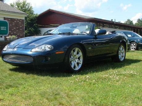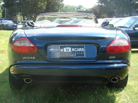 THE JAGUAR XK8 CONVERTIBLE IS ABSOLUTELY ONE OF THE MOST BEAUTIFUL AUTOMOBILES EVER PRODUCED. SIMPLY A PIECE OF ART. THIS PARTICULAR CAR IS A REAL HEAD TURNER WITH A BEAUTIFUL COLOR COMBO OF DARK NAVY METALLIC BLUE WITH A GORGEOUS LIGHT CREAM ALMOST EVEN WHITE LEATHER INTERIOR AND A COMPLIMENTORY NAVY BLUE ONE TOUCH POWER CONVERTIBLE TOP. THIS BEAUTY IS LOADED AND THIS GREAT LOOKING COLOR COMBO JAG IS GREAT VALUE!! AND THERE IS NO QUESTION THAT WHEN THE TOP IS DOWN THIS METALLIC BLUE BEAUTY WILL REALLY STAND OUT FROM THE REST WITH THE BIGGER UPGRADED 18 INCH WHEELS AND THE OFF-WHITE INTERIOR! THIS BEAUTY IS EQUIPPED WITH NAVIGATION, A PREMIUM ALPINE STEREO W/ TAPE AND CD CHANGER, TRACTION CONTROL, FRONT AND REAR FOG LIGHTS, DUAL FRONT AND SIDE AIRBAGS, ABS BRAKES, HEATED FRONT POWER MEMORY SEATING, BURL- MAPLE-WOOD DASH AND TRIM, DIGITAL AUTOMATIC CLIMATE CONTROL AND A SUPER SMOOTH AND VERY POWERFUL 290 H.P. 4.0L V8! SO THIS SPORTS CONVERTIBLE REALLY GETS UP AND GOES AND IS A TRUE PLEASURE TO DRIVE!! SO TREAT YOURSELF AND SPLURGE A LITTLE!! THIS GORGEOUS ROADSTER IS READY TO GO AND ALL SHE NEEDS IS YOU!! ===== **** WE HAVE VERY COMPETITIVE FINANCING AVAILABLE ON SITE **** AND WE PRIDE OURSELVES ON MAKING YOUR AUTOMOBILE PURCHASE AN ENJOYABLE ONE!! NO MATTER WHAT KIND OF CAR YOU ARE PURCHASING FROM US!! CALL TOLL FREE 1-800-899-1055 OR e-mail; sales@motorcarsinc.com MOTORCARS INCORPORATED has been a family owned business for Over 55 years. Our experienced owners and technicians strive to insure that you are satisfied with your purchase. All our vehicles go through a stringent and extensive inspection in our service department. All vehicles are road ready for you and your family to experience and enjoy a mechanically SAFE and very detailed Luxury motorcar. CALL TOLL FREE 1-800-899-1055 Or e-mail sales@motorcarsinc.com WE ARE A CERTIFIED CARFAX DEALER.