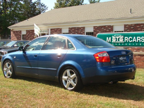 THIS IS SO MUCH CAR FOR THE MONEY. ESPECIALLY IN THE WAY ABOVE AVERAGE CONDITION IT IS IN!! IT ALSO MAKES PERFECT SENSE FOR OUR NEW ENGLAND SEASON CHANGES HAVING THE BEST ALL WHEEL DRIVE SYSTEM IN THE INDUSTRY, AUDI'S SUPER PROVEN RELIABILTY, IT'S ALL AROUND GREAT LOOKS AND MOST AUDI'S PROVEN SAFETY! THIS ABSOLUTELY MINT CONDITION SPORTS SEDAN IS THE MOST LOADED A4 THAT WE HAVE EVER SEEN WITH EVERY OPTION POSSIBLE, LIKE NAVIGATION, THE PREMIUM BOSE SOUND WITH AN IN-DASH 6-DISC CD CHANGER, FULL LEATHER INTERIOR, POWER FOLDING EXTERIOR MIRRORS, MEMORY SEATING, POWER GLASS SUNROOF, THE SPORT PACKAGE WITH THE 17 INCH 5-STAR ALLOY RIMS AND A FULL SIZE MATCHING SPARE, FRONT AND EVEN REAR HEATED SEATS, XENON HEADLAMPS,..AND THAT IS JUST LISTING THE UPGRADED OPTIONS,... WHERE THE CAR IS EQUIPPED WITH KEYLESS ENTRY WITH FACTORY ALARM, REMOTE TRUNK RELEASE, DUAL ZONE DIGITAL CLIMATE CONTROL, OUTSIDE TEMP GUAGE, ONBOARD DASH TRIP COMPUTER, CENTER ADJUSTING LEATHER ARMREST WITH CUP HOLDERS INSIDE, SPLIT REAR DROP DOWN SEATS AND EVEN STILL JUST SO MUCH MORE. YOU JUST CAN NOT GO WRONG WITH THIS ALL WHEEL DRIVE SEDAN,.... ESPECIALLY HERE IN CONNECTICUT WITH OUR INCLIMATE WEATHER BECAUSE THIS ALL WHEEL DRIVE WILL GET YOU TO ANY DESTINATION COMFORTABLY AND IN STYLE BUT MOST IMPORTANTLY SAFE AND SOUND!! AND THE ALL WHEEL DRIVE ALSO GIVES YOU SUPERB CORNERING ON THOSE FUN TWISTY & WINDY ROADS IN THE SUMMER WHICH AGAIN MAKES FOR THE PERFECT ALL YEAR ROUND CAR!! AND THE BEST PART ABOUT IT IS THE EXCEPTIONAL VALUE!! ===== ===== **** WE HAVE VERY COMPETITIVE FINANCING AVAILABLE ON SITE **** AND WE PRIDE OURSELVES ON MAKING YOUR AUTOMOBILE PURCHASE AN ENJOYABLE ONE!! NO MATTER WHAT KIND OF CAR YOU ARE PURCHASING FROM US!! CALL TOLL FREE 1-800-899-1055 OR e-mail; sales@motorcarsinc.com MOTORCARS INCORPORATED has been a family owned business for Over 55 years. Our experienced owners and technicians strive to insure that you are satisfied with your purchase. All our vehicles go through a stringent and extensive inspection in our service department. All vehicles are road ready for you and your family to experience and enjoy a mechanically SAFE and very detailed Luxury motorcar. CALL TOLL FREE 1-800-899-1055 Or e-mail sales@motorcarsinc.com WE ARE A CERTIFIED CARFAX DEALER.