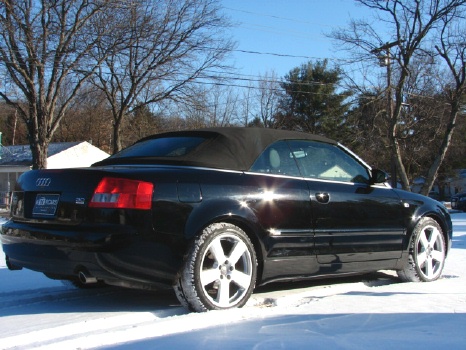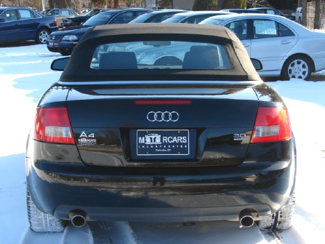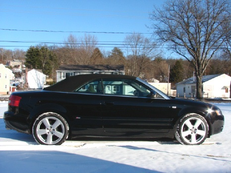 IT JUST DOES NOT GET ANY BETTER THEN THIS!! THIS IS ONE SURE HEAD TURNER!! IT JUST MAKES SO MUCH SENSE TO BUY THIS CAR BECAUSE BEING AN ALL WHEEL DRIVE CONVERTIBLE THAT SEATS FOUR, IT IS PERFECT FOR OUR NEW ENGLAND SEASON CHANGES!! ESPECIALLY WITH AUDI'S PROVEN REPUTATION,PROVEN ALL WHEEL DRIVE SYSTEM, GREAT LOOKS AND GREAT VALUE!! THIS IS THE TOP OF THE LINE 3.0 LITER V6 QUATTRO WITH A GORGEOUS SUPER HARD TO FIND COLOR COMBO OF TRIPLE BLACK! NOW THIS CAR HAS GOT "EYE APPEAL"!!! AND IS LOADED WITH ALL THE OPTIONS LIKE A PREMIUM BOSE SOUND SYSTEM WITH AN IN DASH 6 DISC CD CHANGER AND CASSETTE, FULL DUAL POWER HEATED SEATS WITH POWER ADJUSTING MULTI-POSITION LUMBAR SUPPORT, A LEATHER WRAPPED MULTI-FUNCTION TILT STEERING WHEEL, DUAL ZONE DIGITAL CLIMATE CONTROL, MULTIPLE CUP HOLDERS, DUAL FRONT AND SIDE AIRBAGS, ELECTRONIC STABILIZATION PROGRAM, KEY-LESS ENTRY WITH REMOTE TRUNK RELEASE AND FACTORY ALARM AND THIS ALL WHEEL DRIVE HAS THE S-LINE PACKAGE WITH THE SUPER SPORTY UPGRADED FIVE STAR 18 INCH ALLOY RIMS WITH A FULL SIZE MATCHING SPARE,(WE EVEN JUST PUT FOUR BRAND NEW PIRELLI ALL SEASON TIRES ON IT), REAR LIP SPOILER AND SPECIAL S-LINE BADGING THAT REALLY MAKE IT STAND OUT ABOVE THE REST!! IT ALSO HAS POWER ONE TOUCH UP AND DOWN WINDOWS, POWER MIRRORS THAT EVEN FOLD IN WITH THE FLIP OF A SWITCH! AND MOST IMPORTANTLY THIS HOT LOOKING DROP TOP HAS A ONE TOUCH POWER CONVERTIBLE TOP!! AND STILL JUST SO MUCH MORE!! AUDI EVEN THOUGHT OF THE IDEA TO HAVE ONE MASTER CONTROL SWITCH FOR ALL THE WINDOWS TO GO UP OR DOWN SIMULTANEOUSLY FOR THE SHEER CONVENIENCE ALONE!! THIS CAR IS "STATE OF THE ART" AS WELL AS NICE TO LOOK AT! AND THE SUNNY DAYS WILL SOON BE HERE AGAIN SOON! SO TREAT YOURSELF YO THIS AWESOME GERMAN ENGINEERED ROADSTER!! ASKING $27,500.===== **** WE HAVE VERY COMPETITIVE FINANCING AVAILABLE ON SITE **** AND WE PRIDE OURSELVES ON MAKING YOUR AUTOMOBILE PURCHASE AN ENJOYABLE ONE!! NO MATTER WHAT KIND OF CAR YOU ARE PURCHASING FROM US!! CALL TOLL FREE 1-800-899-1055 OR e-mail; sales@motorcarsinc.com MOTORCARS INCORPORATED has been a family owned business for Over 55 years. Our experienced owners and technicians strive to insure that you are satisfied with your purchase. All our vehicles go through a stringent and extensive inspection in our service department. All vehicles are road ready for you and your family to experience and enjoy a mechanically SAFE and very detailed Luxury motorcar. CALL TOLL FREE 1-800-899-1055 Or e-mail sales@motorcarsinc.com WE ARE A CERTIFIED CARFAX DEALER.